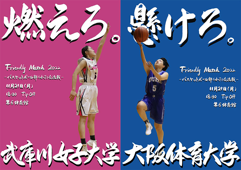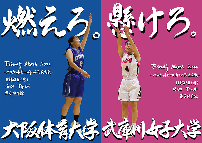 11月21日(月)、本学の第6体育館にて、バスケットボール部女子交流戦「フレンドリーマッチ2022 大阪体育大学×武庫川女子大学」を開催いたしました。