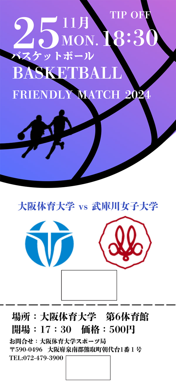 【イベント情報】バスケットボール部女子交流戦「フレンドリーマッチ2024 大阪体育大学×武庫川女子大学」開催!(1月23日更新)